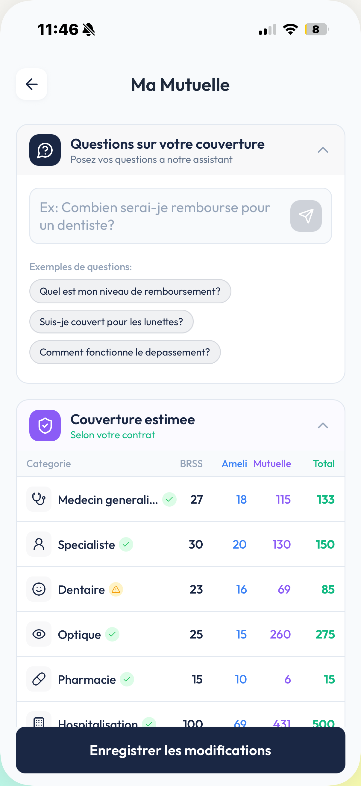 Importez votre contrat mutuelle et notre IA l'analyse pour vous : elle identifie vos garanties, vos plafonds et vous explique clairement ce que vous pouvez vous faire rembourser.